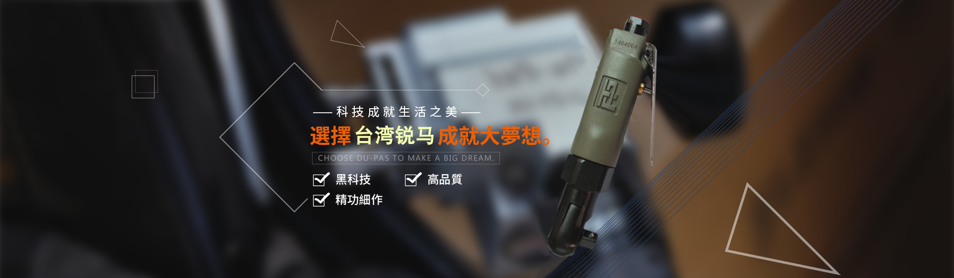 銳馬氣動(dòng)工具廠家是臺(tái)灣專業(yè)制造氣動(dòng)工具廠"筌誠(chéng)機(jī)械工業(yè)",30多年來致力于氣動(dòng)/電動(dòng)工具領(lǐng)域之研發(fā),生產(chǎn)和銷售,努力提升本身產(chǎn)品價(jià)值,在臺(tái)灣氣動(dòng)工具制造領(lǐng)域始終處于領(lǐng)先地位,并成功銷往國(guó)際市場(chǎng)。